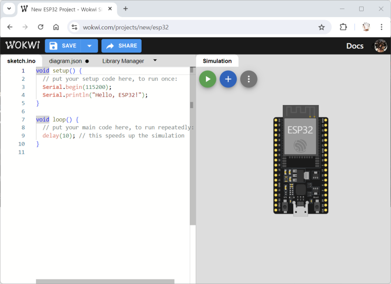 ESP32 가상 개발 사이트와 예제