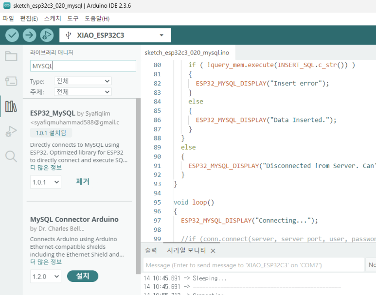 #ESP32 #ESP32C3 #XIAO #MySQL #DB연동 #MariaDB